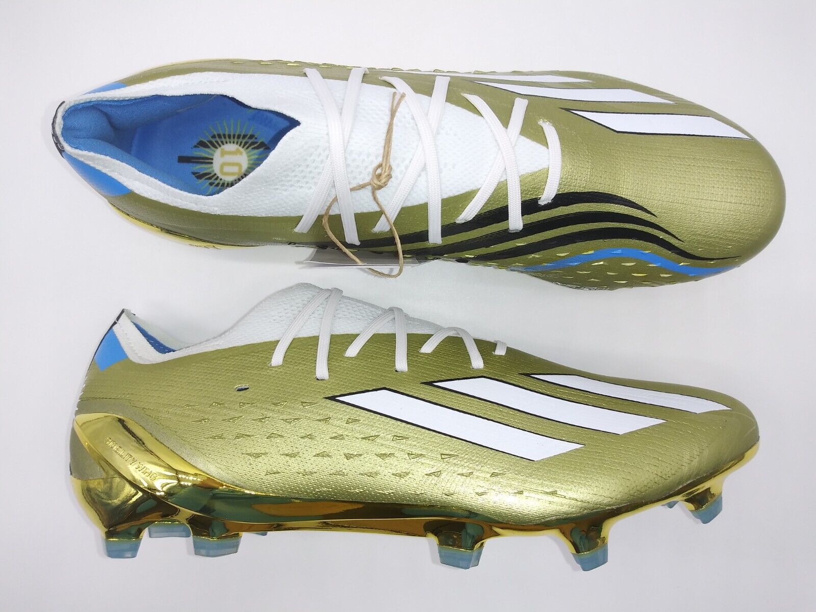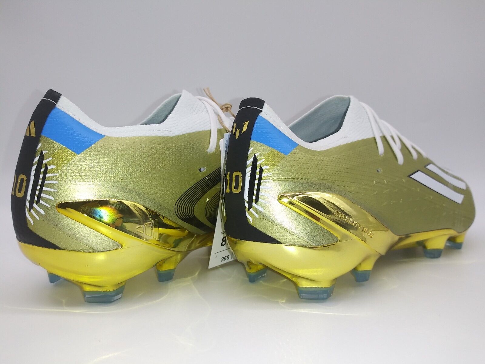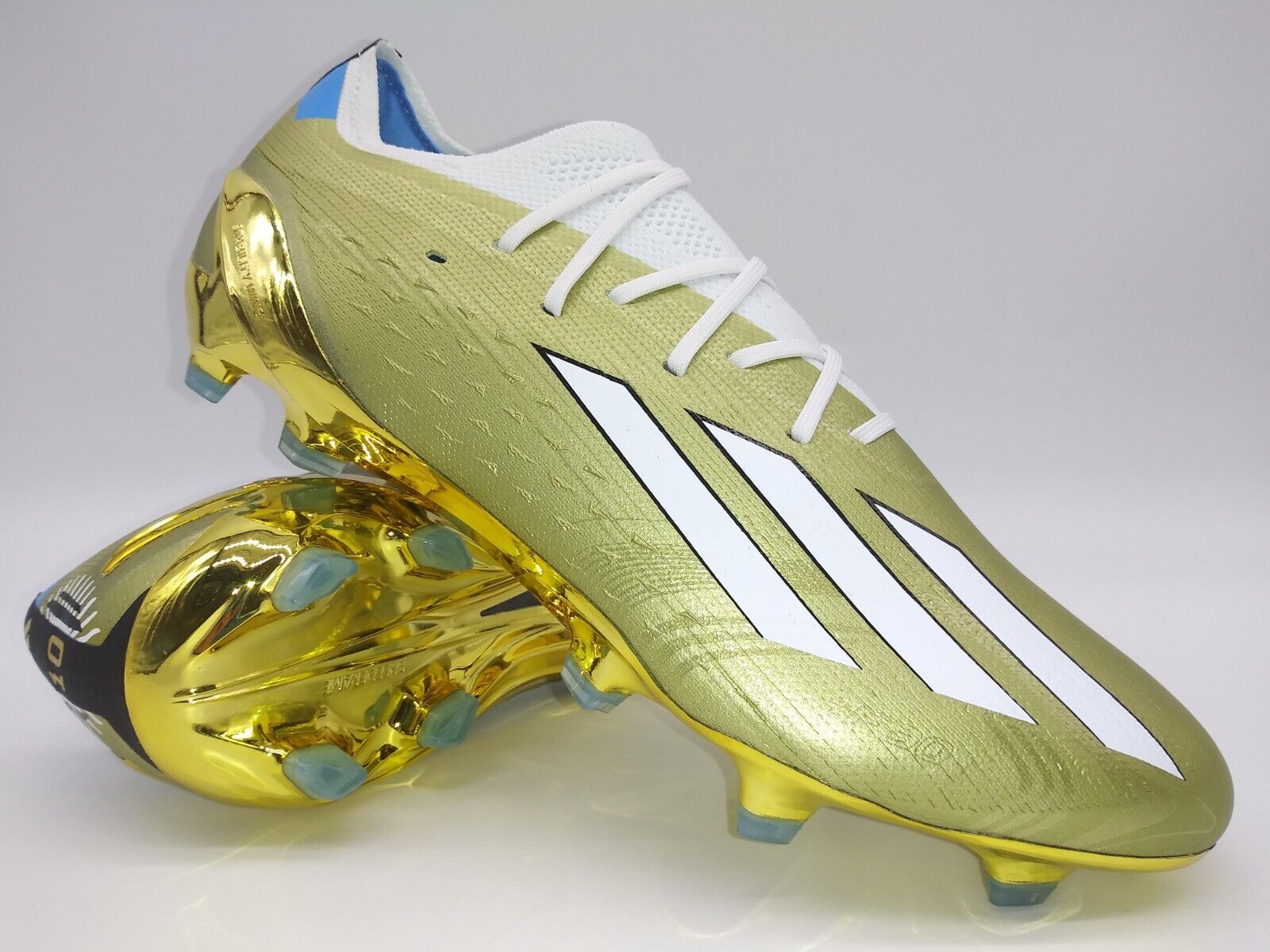 These are top of the line, of extremely high quality. These are Limited edition cleats made for Messi during the 2022 Qatar World Cup that he and Argentina won. Winning the World Cup and obtaining the last big trophy that was missing from his luxurious trophy cabinet has cemented him as the Greatest player of all time in many peoples eyes. Therefore these are not only a stunning pair of soccer cleats but a piece of history that goes along with his achievement.